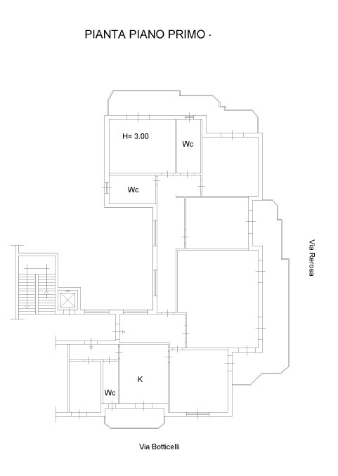 Doppio ingresso, studio, cucina abitabile, tinello, ampio salone, disimpegno, 3 camere, 3 bagni.